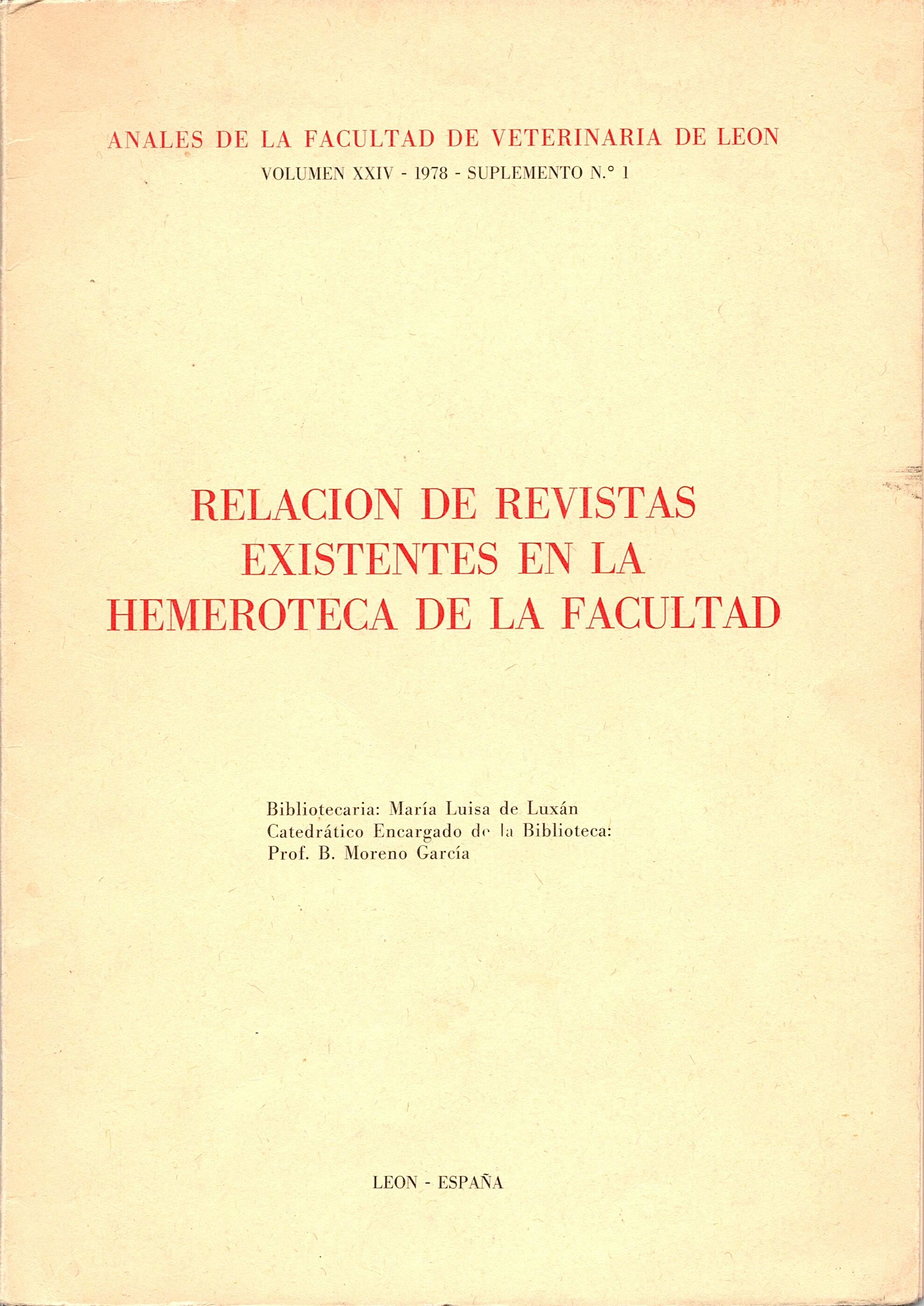 • Suplemento 1. Relación de revistas existentes en la Hemeroteca de la Facultad